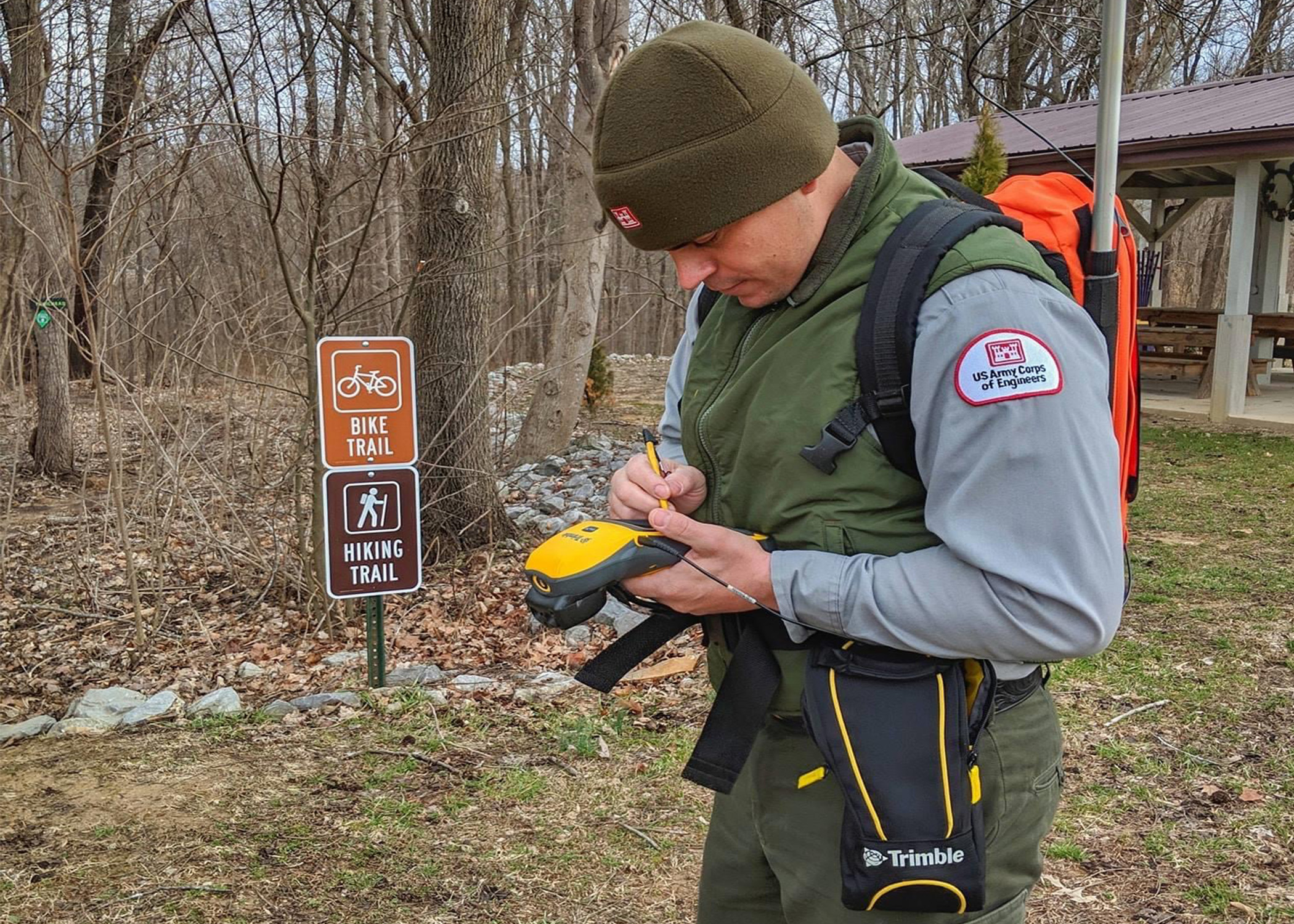 LAKE BARKLEY, KY. (Feb 2019) Shane Brady uses a Trimble Geographic Information System (GIS) 150 device to collect spatial and geographic data on public trails for the U.S. Army Corps of Engineers, Nashville District.